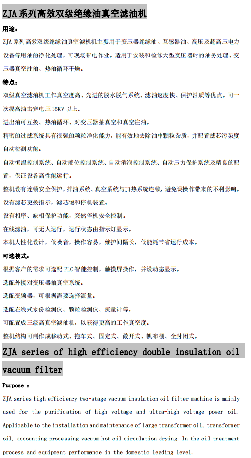 ZJA系列高效雙級絕緣油真空濾油機(jī)