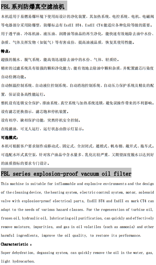 FBL系列防爆真空濾油機(jī)