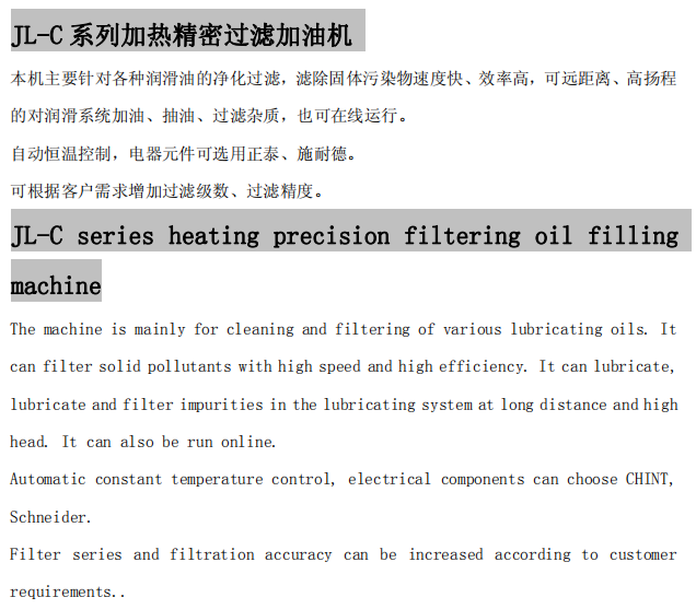 JL-C系列加熱精密過(guò)濾加油機(jī)